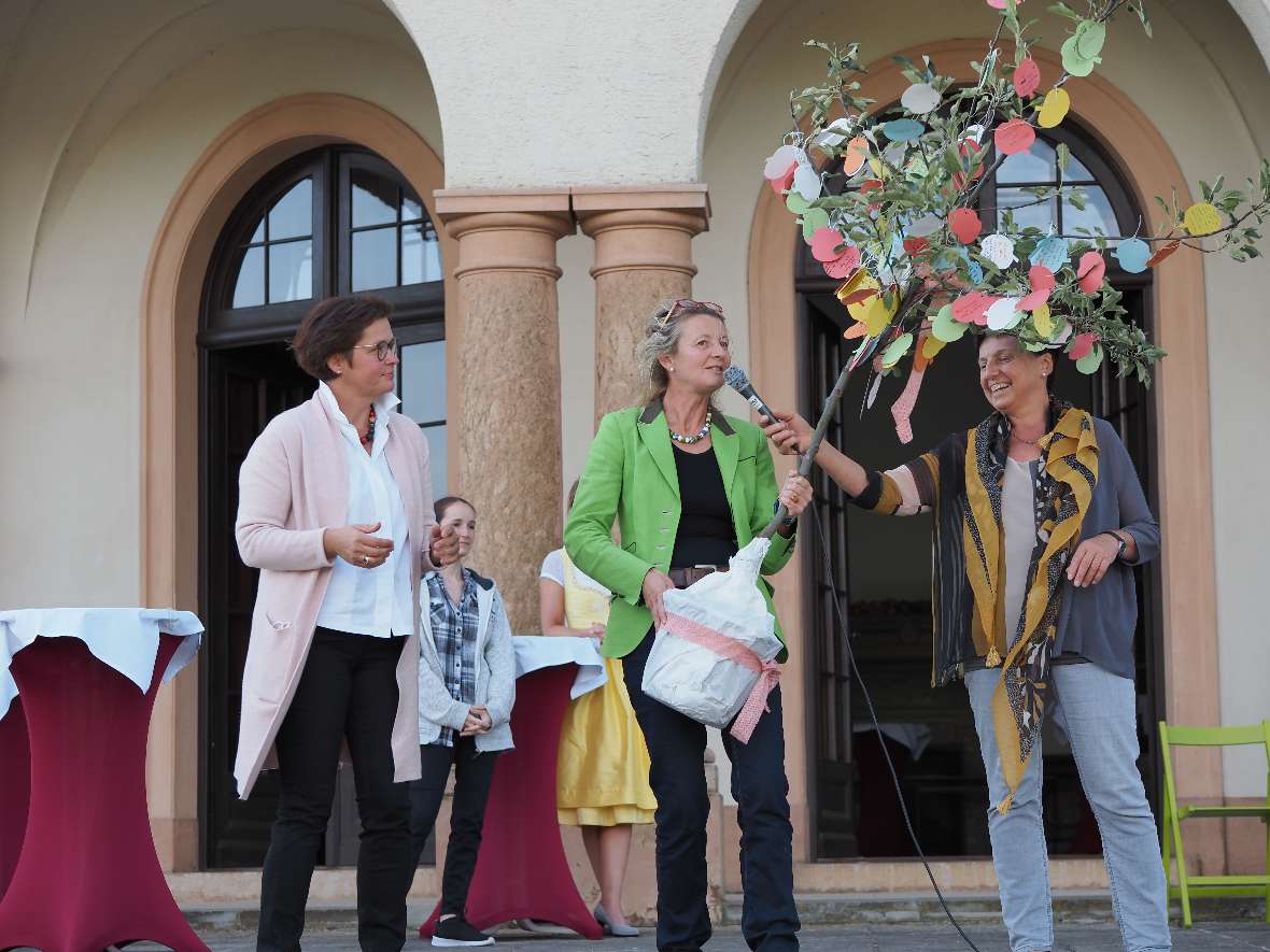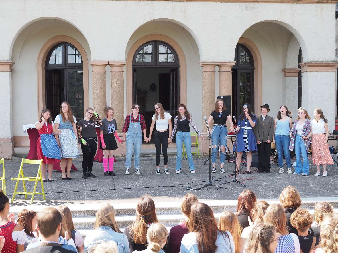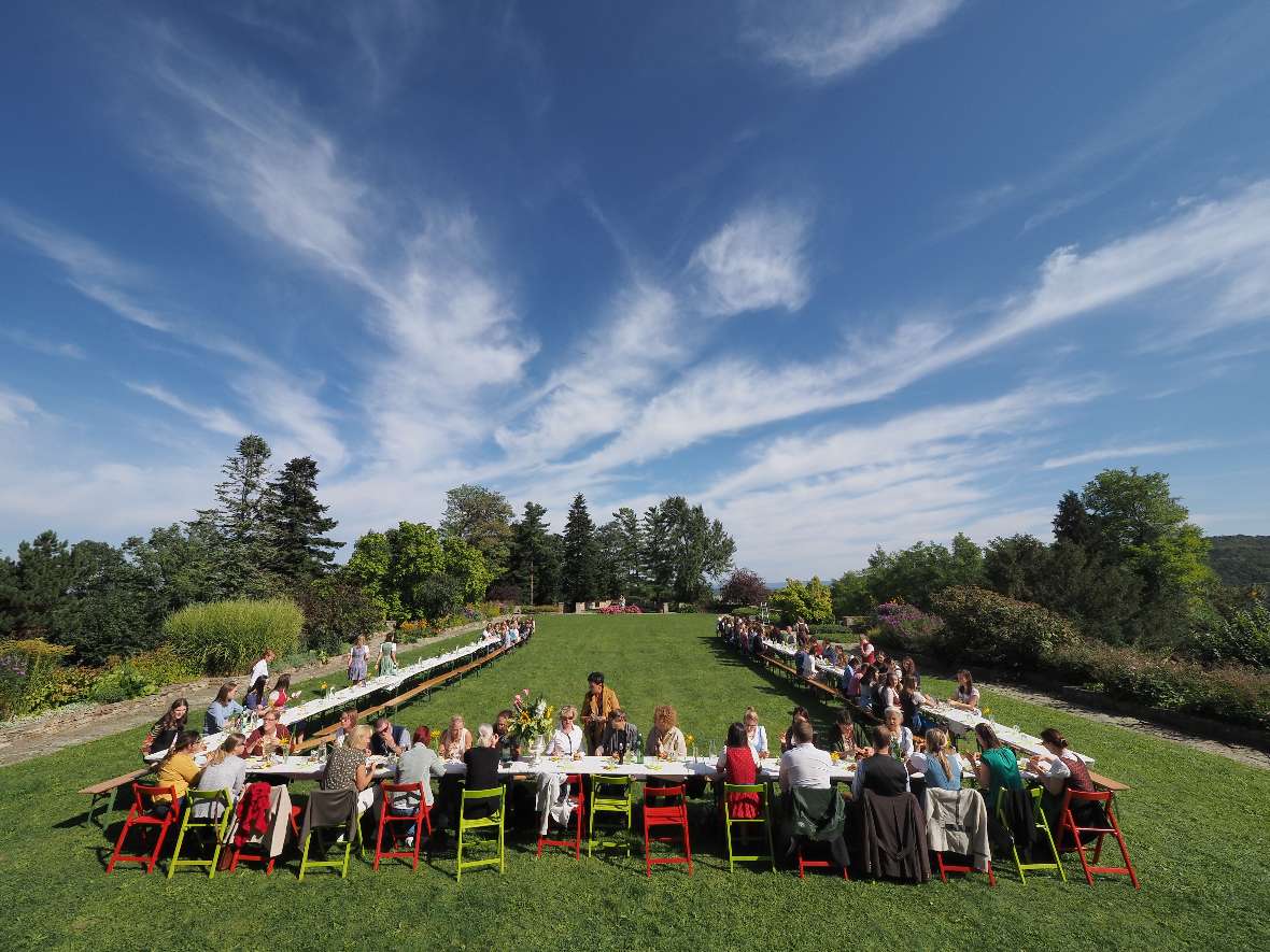 DI Monika Schneier-Blesl hat als neue Leiterin der Schule innerhalb kürzester Zeit ein Fest für die ganze Schule organisiert. Mit einem Rückblick auf die Geschichte der HBLA Sitzenberg, musikalischer Untermalung von der Stageband der Musikschule Traismauer und einem Festessen wurde bei traumhafter Kulisse im Schlossgarten in großer Gemeinschaft gefeiert.